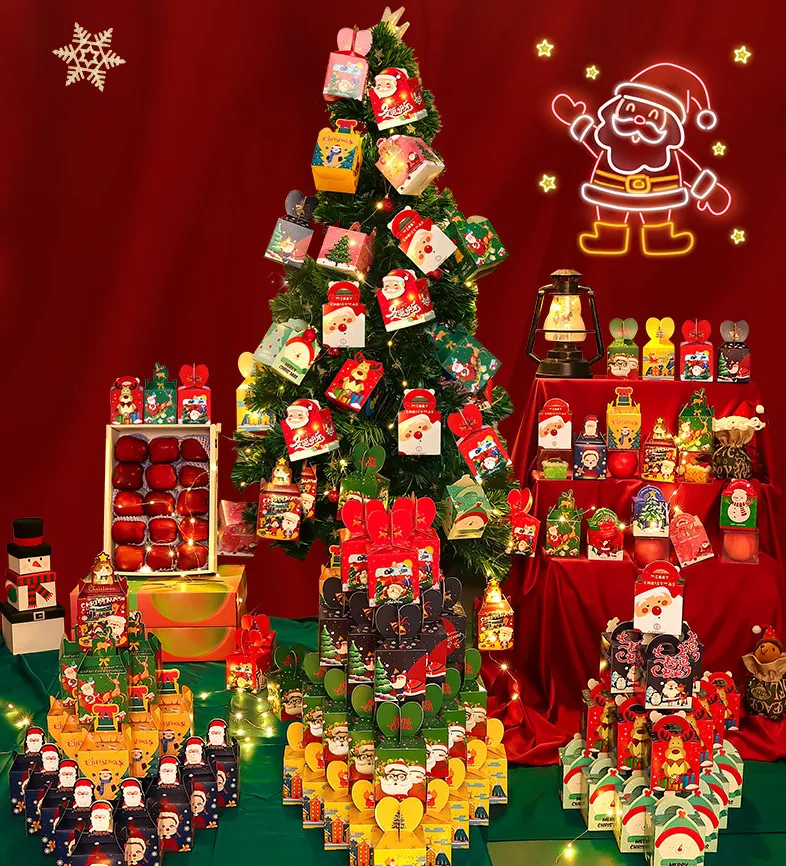 Die von der Zemeijia-Fabrik für Weihnachten entworfene und hergestellte Weihnachtsdekorations-Geschenkbox ist eine Geschenkbox mit festlicher Atmosphäre. Es handelt sich um einen Cartoon-förmigen, niedlichen und hochauflösenden Farbdruck. Es kann entsprechend Ihren Bildern individuell gestaltet werden, um eine exklusive Geschenkbox für die Weihnachtsfeier zu erstellen, die den sorgfältigen Überlegungen des Feiertags entspricht. Die Weihnachtsdekorations-Geschenkbox von Zemejia bietet Platz für Äpfel, Süßigkeiten, kleine Geschenke usw. Es ist eine Box, die Segen für geliebte Menschen, Liebhaber und Freunde enthält.