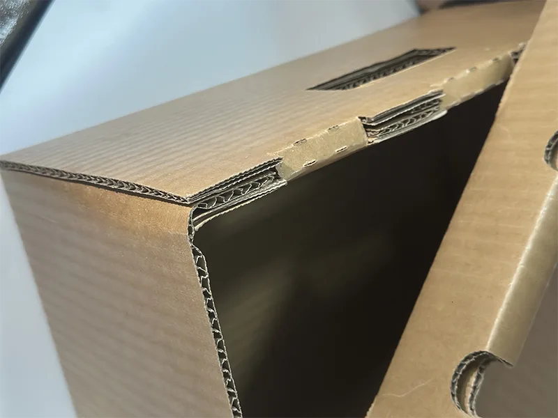 Der Tragfähigkeitsvorteil wasserdichter Großkartonagen aus Wellpappe liegt nicht nur in der gezielten Strukturverstärkung, sondern auch in der Gewährleistung der Wasserdichtigkeit für die Tragstabilität. Im Hinblick auf die strukturelle Gestaltung wird der untere Kasten der tragenden Kernkomponente aus verdickter Wellpappe bestehen, um die Druckfestigkeit des Bodens zu erhöhen, wodurch große Produkte mit einem Gewicht von 20 bis 50 kg stabil getragen werden können. Gleichzeitig besteht die Überdachung aus flachem und steifem Karton mit ausreichender Steifigkeit. Beim Stapeln und Lagern (normalerweise 2-3 Lagen) kann das Gewicht der oberen Box gleichmäßig auf die untere Überdachung verteilt werden, ohne dass die Gefahr eines Zusammenbruchs besteht.