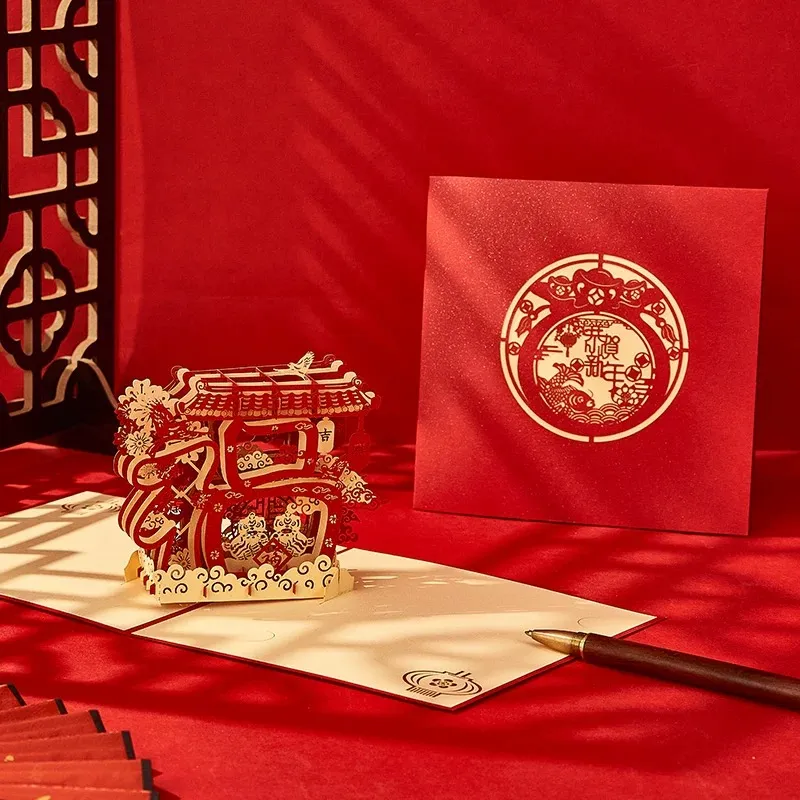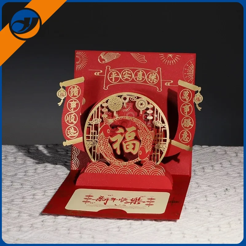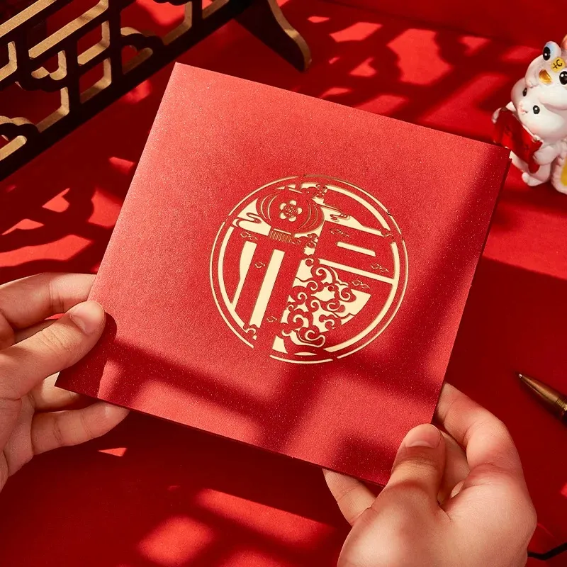 4: Exquisite Verpackung: dieNeujahr 3D -Papierkarteist normalerweise mit exquisiten Umschlägen oder Verpackungskästen ausgestattet, um die Grußkarte vor Schäden zu schützen und gleichzeitig das Gesamtgeschenk und den rituellen Sinn zu verbessern.