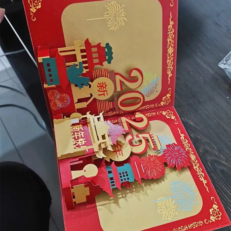 Neujahr 3D-Papierkarte ist eine dreidimensionale Papierkarte, die speziell für Neujahrsfeierlichkeiten entwickelt wurde. Neue Jahr 3D-Papierkarte kombiniert die Essenz traditioneller Grußkarten mit moderner Papierkunsttechnologie. Durch einzigartige Falt- und Schneidetechniken präsentiert es ein neues Jahr Themenmuster mit einem dreidimensionalen und dynamischen Effekt und verleiht dem Neujahrsfeier eine andere Art von Überraschung und Segen.