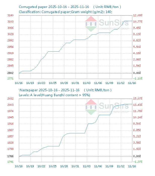 Treiber des Trends sind steigende Altpapierpreise. Altpapier der Spitzenklasse Huang Banzhi, das einen Reinheitsgrad von über 95 % aufweist und als wichtigster Rohstoff für Wellpappe dient, stieg zwischen dem 16. Oktober und dem 16. November um 15,07 %. Dies hat den Kostendruck weiter verstärktWellpappeLieferungen.